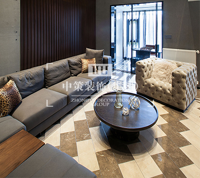 本案设计的初衷是让空间与生活习惯完美融合,空间从整体到局部细节的设计逻辑;材质的碰撞,肌理的触摸感、色彩的和谐度、各种光源的氛围,不界定风格的局限。 本案在视觉上整体采用了黑、白、灰作为基调,深棕木色穿插其中进行过渡,冷暖对比平衡整个空间的色彩,让这个简洁的空间,保持色调的纯粹,两者相得益彰。 墙面以灰色乳胶漆饰面,特意做了黑色的踢脚线,这也正好与墙面的黑色形成呼应;浅灰色的沙发与高级灰的墙面形成一深一浅的色彩差,过渡色看起来更舒服;沙发背后深棕木色的格栅背景墙中和了灰色带来的清冷,不同的材质对比也带来了更多的视觉感受。 大理石电视墙的气质提升了整个客厅的档次,也彰显了主人公的品味;楼梯的设计也是一道风景线,黑白搭配经典组合设计给整体增加很多颜值;二楼上来以后就是主卧,卧室与楼梯间之间的格栅设计,保证私密的同时又让空间通透,虚实处理十分巧妙。