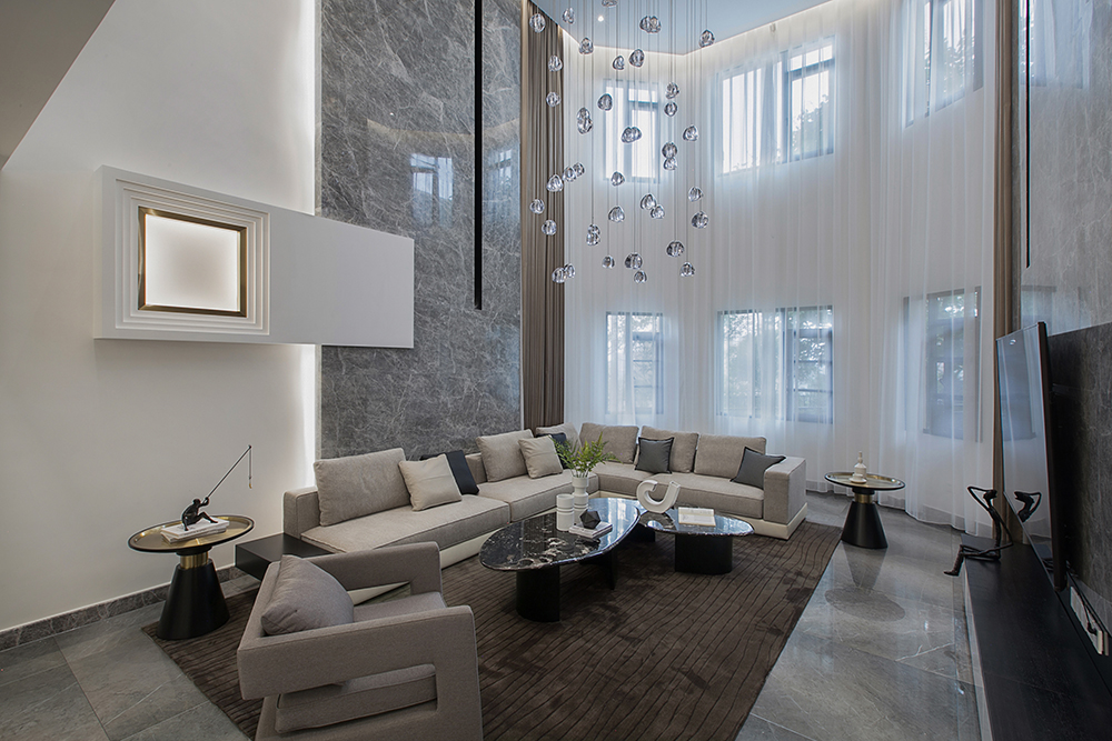 本案为3层别墅,风格定位为现代黑白灰。整体空间高雅、宁静,讲述了一种‘隐’于市的生活态度。