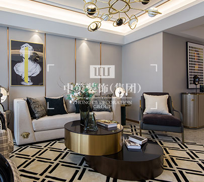 现代轻奢风格少不了的就是色调与材质的精彩交织,黑白色配上金属色调,光洁且纹理清晰的大理石配上流光溢彩的金属材质,整个空间空前的夺