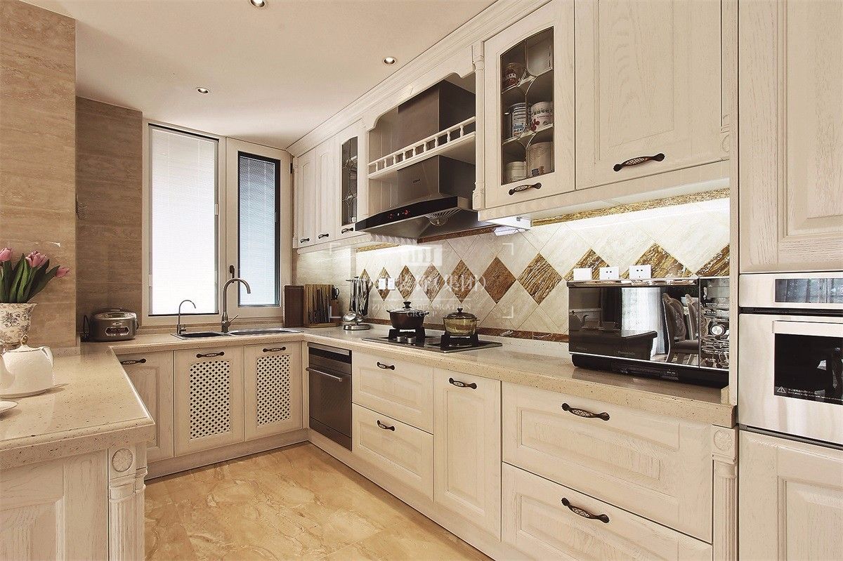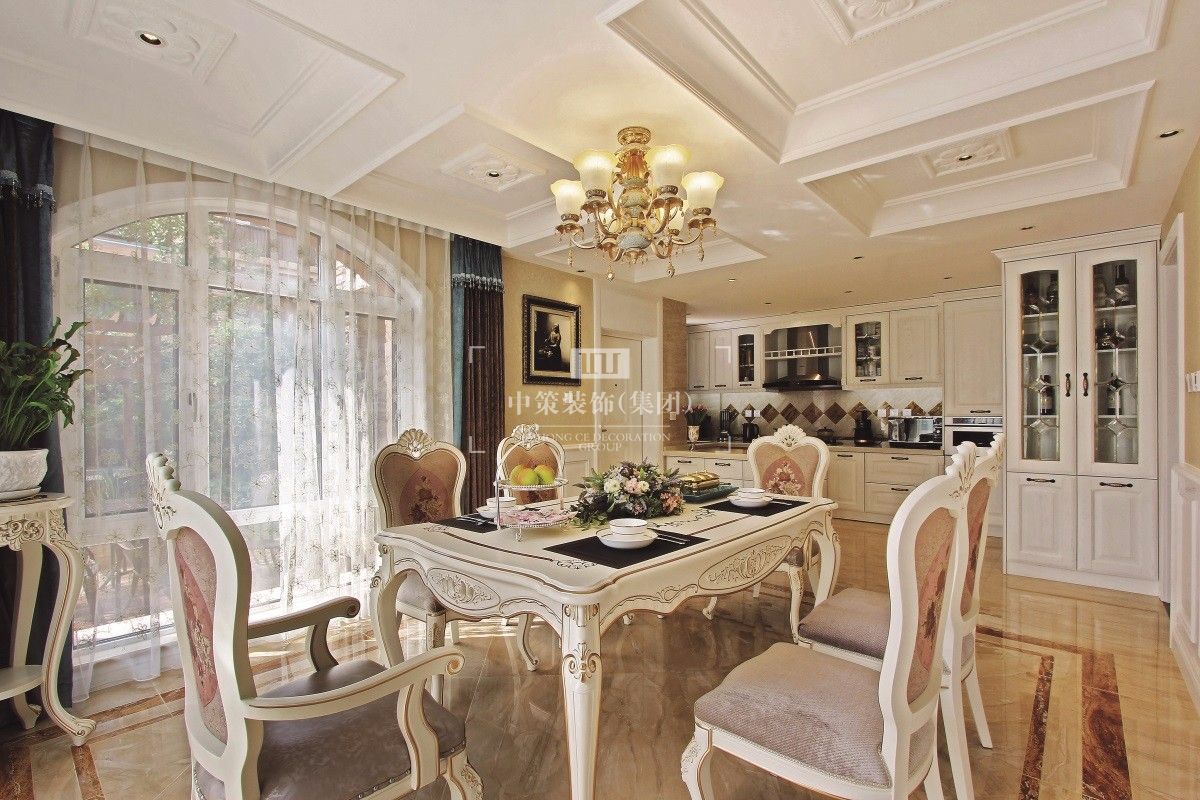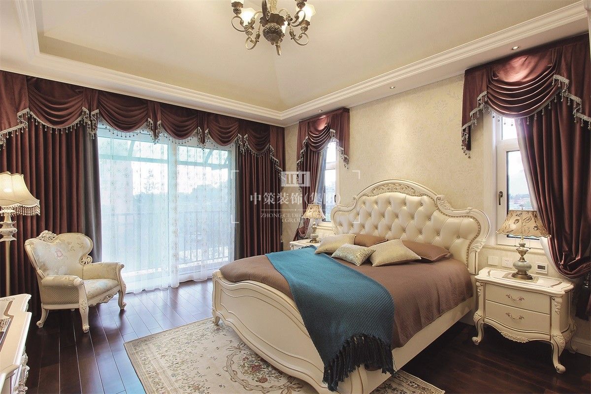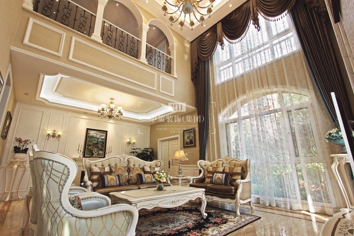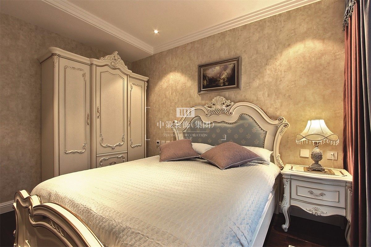 本案主色调为米色,通过完美的典线,精益求精的细节处理,带给家人不尽的舒服触感。家具为古典弯腿式,家具、门、窗漆成白色。擅用各种花饰、丰富的木线变化、富丽的窗帘帷幄来装饰,表现了华美、富丽、浪漫的气氛。再通过装饰画、灯饰来装点完美空间,营造浓郁的西方艺术氛围,表现主人的文化涵养。