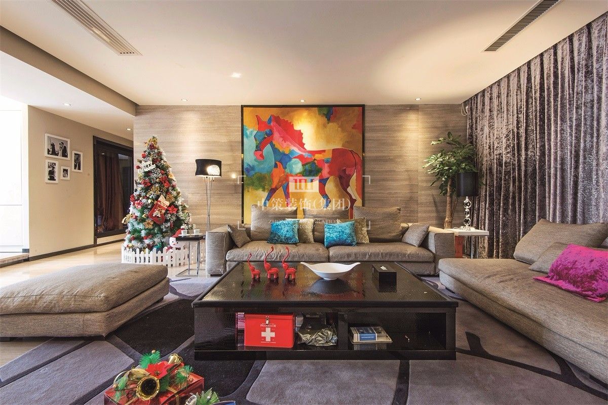 在空间的每个角落都融合了现代情调及装饰艺术的设计语言,既保存着现代的简约气韵和摩登的个人风格,又在摩登及优雅的空间中显得格外有亲和力。在空间划分上,充分利用墙体的转折、材料的变化和家具隔断的摆放,既将空间的功能进行了合理的划分,又保持了区域间的相互沟通,使空间层次感顿时显现。