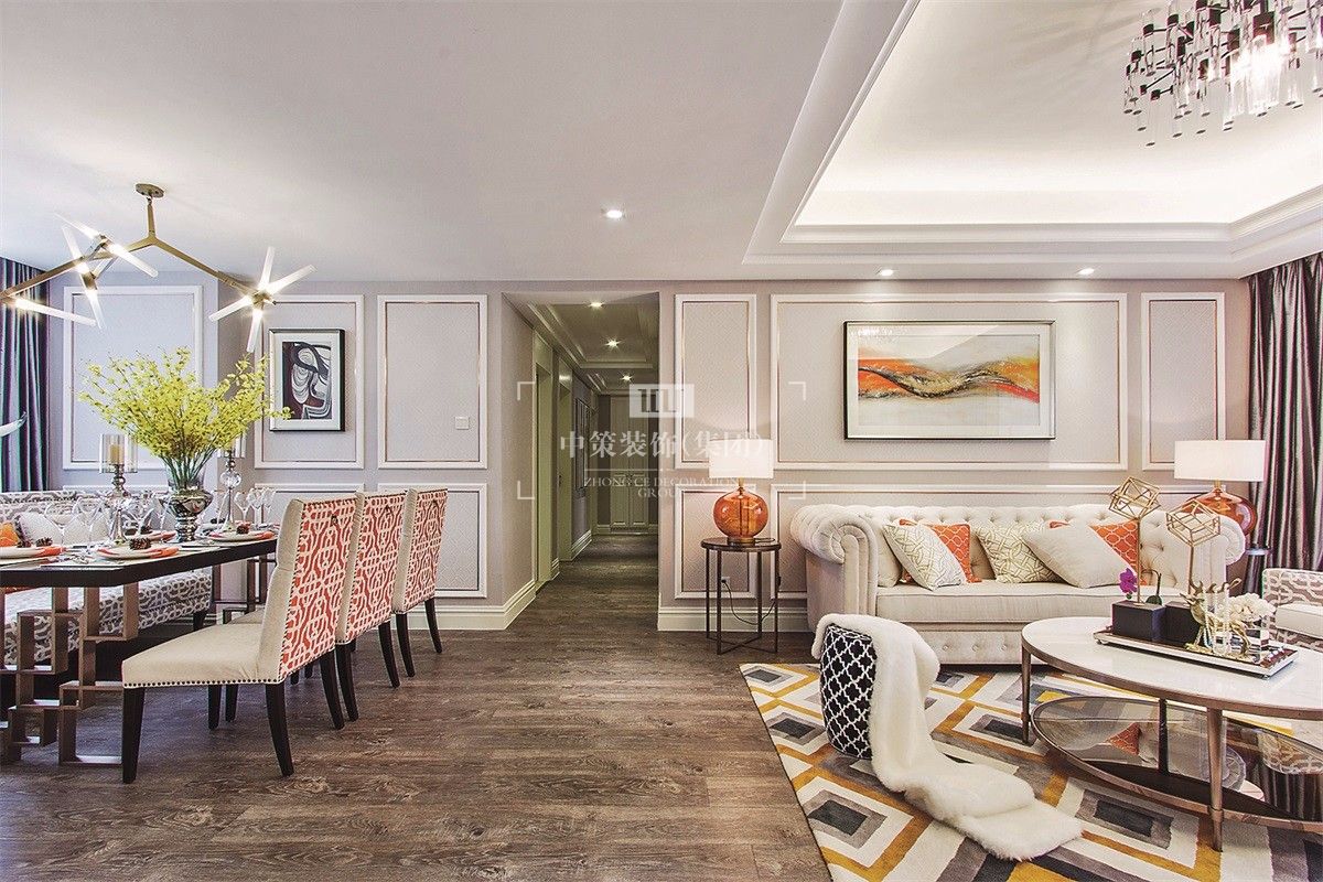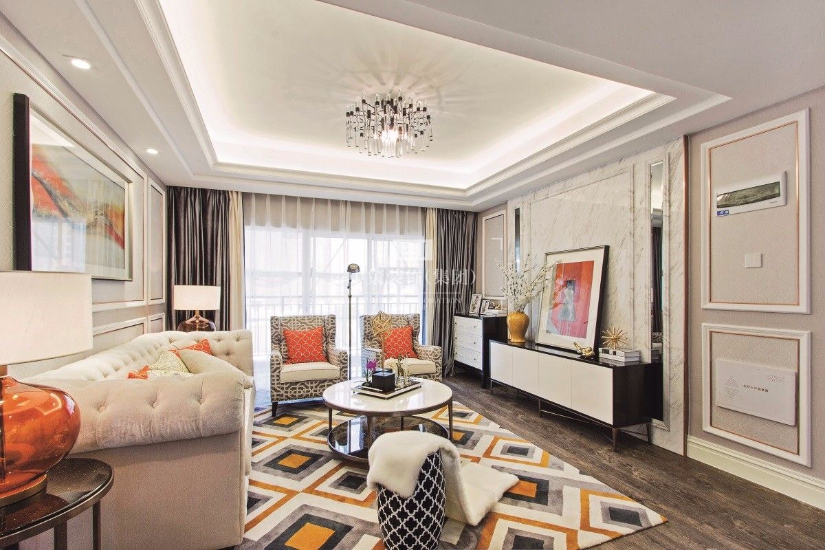 本案业主追求自然美,期望将家装扮得清新雅致。全屋以浅色调为主,橘色的配色设计创新、亮眼。一步入客厅,惊艳的内部设计令人赞叹不已,充斥墙面的画框造型,几何纹样装饰地毯,橘黄元素相映成趣,凸显出主人典雅的生活品味。