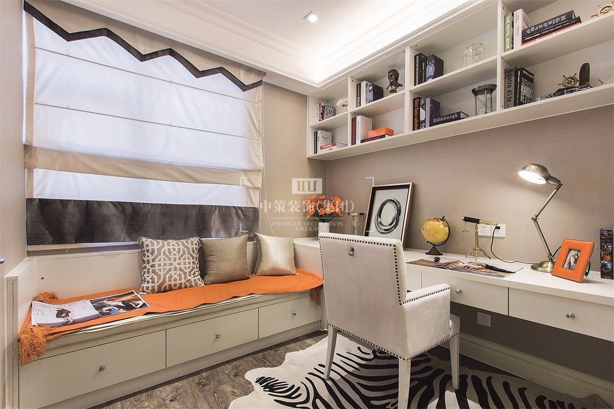 而活泼的橘色在室内无处不在,如客厅里的球形灯、吊灯、椅子、装饰画,书房内的相框、桌花,甚至床上随意摆放的抱枕,都使得空间洋溢着明快活泼的气息。偶尔小憩,可以在橘色飘窗边喝茶看书,多么惬意的人生!