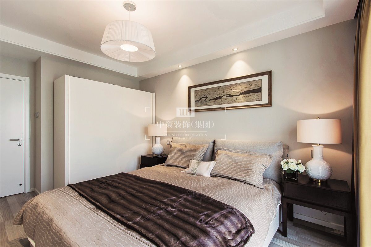现代简约强调的是从务实出发,讲究的是美观与实用同在。卧室也遵循了这一要求,两间都以浅灰色作为基础色调,配上了深蓝色和深棕色作为对比,突出两个房间不同的精神格调。一间更为年轻和律动,一间更为沉稳而祥和。值得一提的是床头的装饰画,很好的搭配了空间的颜色,同时也为房间增添了生动的画面感。