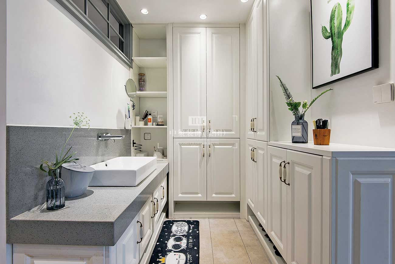 整个空间化零为整,将卫生间干湿分离,鞋帽区设计将利用率最大化,增加储物空间。开放式厨房的设计及开放空间的白墙设计都符合业主追求的生活方式。主卧室超大衣帽间的设计满足所有女性的收纳欲望。客厅花台的设计让整个空间极富浪漫气息。整体的软装搭配符合整个空间的温馨气息,给业主带来温暖的家居氛围!