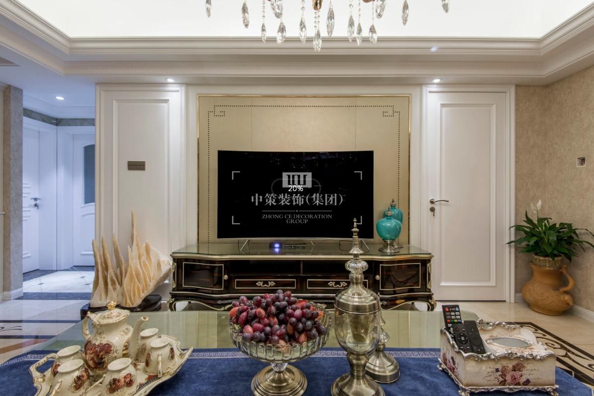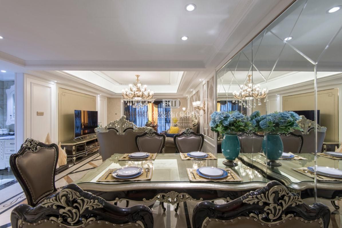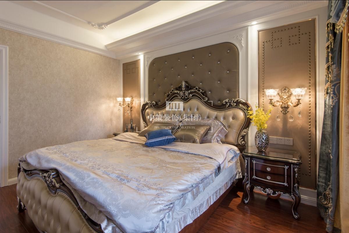 整体暖色墙面肌理感丰富,搭配宫廷品牌家具,整个环境氛围凝聚优雅气质,像是在海洋和天空中手捧一簇盛开的香槟玫瑰。配合深蓝色与暖黄色的靠垫,显眼的撞色对比,既强烈而又和谐,一柔一刚,更生动的体现出家具不一样的轮廓曲线,汇聚出动人风情。
