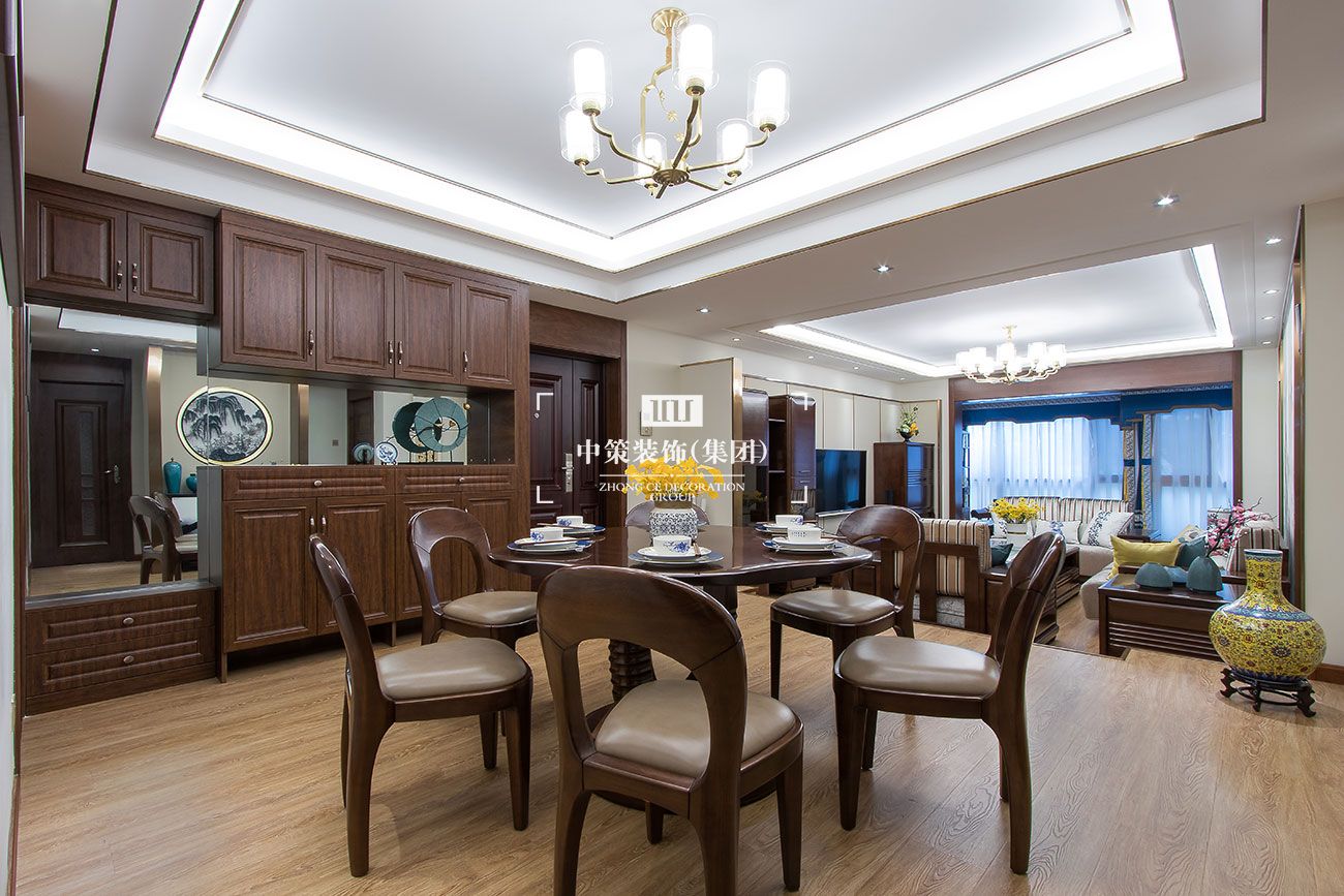 本案将传统中式元素与现代材质完美结合,相互辉映,体现业主对清雅含蓄、端庄丰华的东方精神境界的追求。