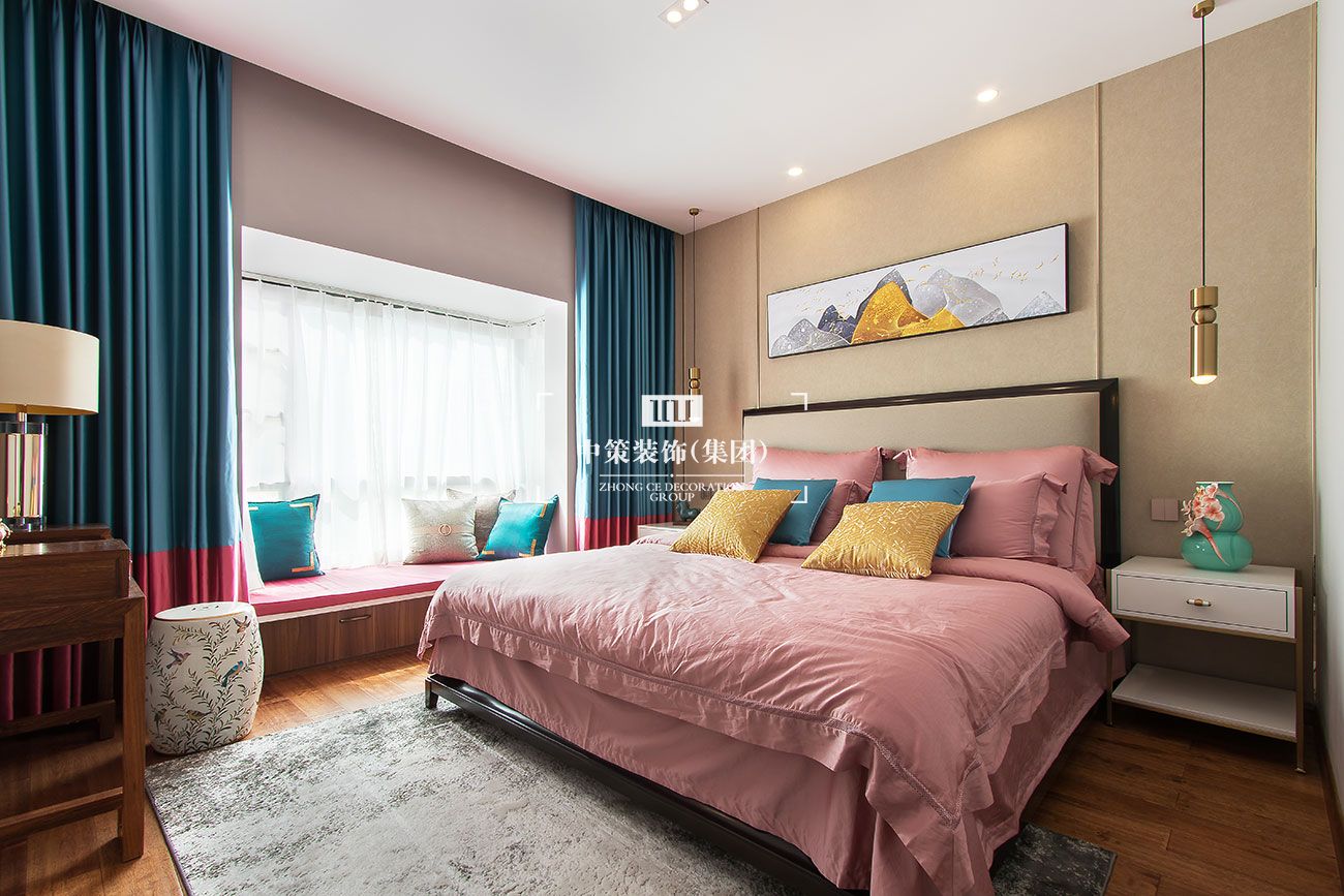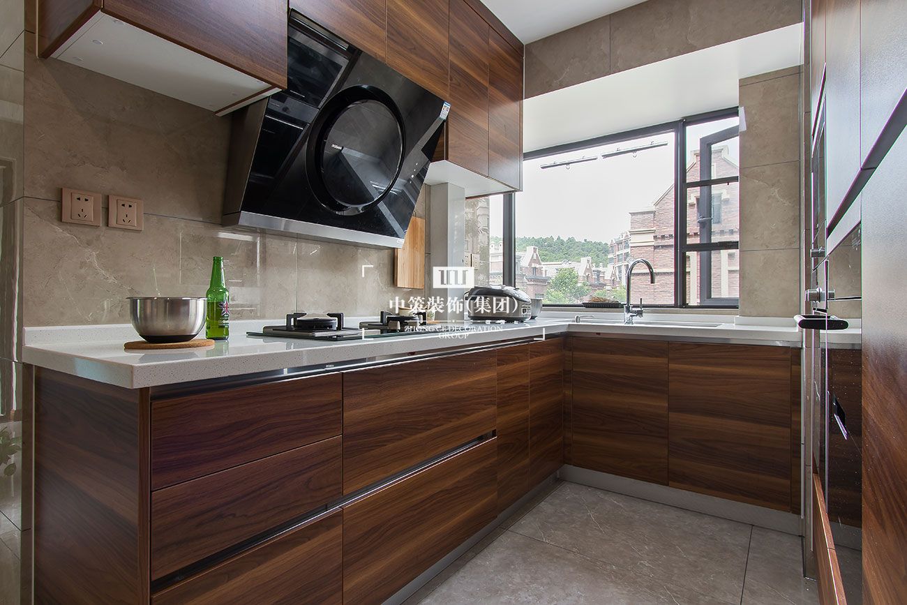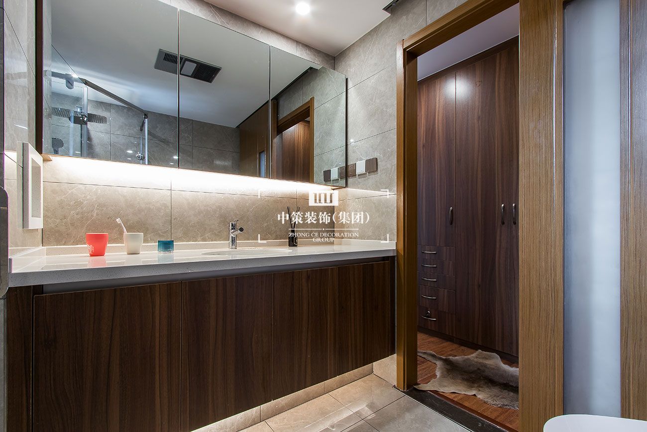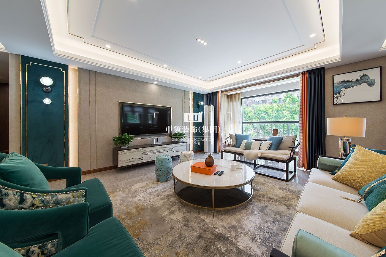 户型上的改动,将原有的界限打开,利用线条与色彩重新划分,定义彼此,也让空间更大气。设计师将原来的客房和卫生间打开,让客厅、书房、餐厅、吧台形成一个通透的大空间。连客厅的电视柜和沙发靠背都是一幅画,虚实相映之间,意境相融之时,一切都被润泽得恰到好处。而开放式书房更显大气通透,一剪窗外光,半响读书时。阳台一张木色的中式茶桌、中式茶椅,与外面花园的天然颜色相衬,闲时端茶落座,别具情趣。