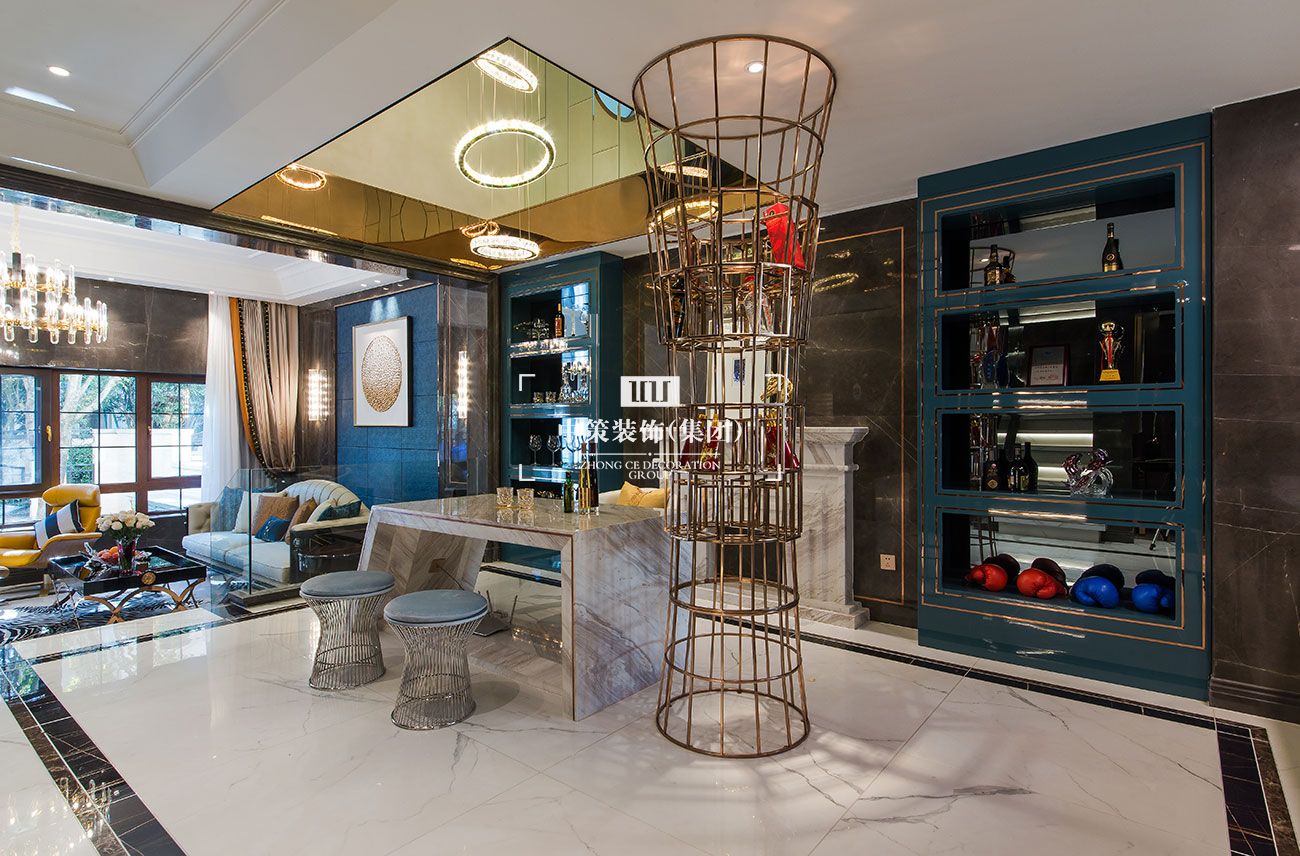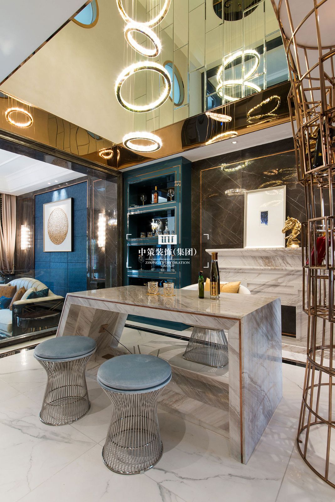 本案旨在打造奢享级豪宅。设计手法博采众家之长:现代风格的时尚、中式的意境、欧式的华丽;用恰当的比例、恰当的表现手法融合在一起,不但没有冲突反而相得益彰。