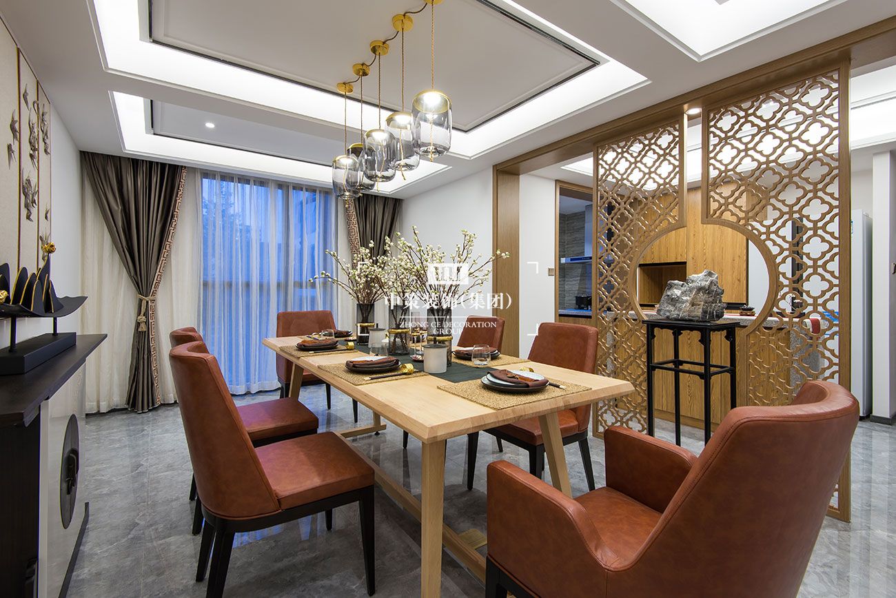 中式建筑注重结构的对称,来形成空间的美感,这些在本案空间中体现的恰如其分。以“山水、水墨”来贯穿整个空间,一山一石,一草一木,都在与人、与空间对话,禅意浓浓,心境清清。